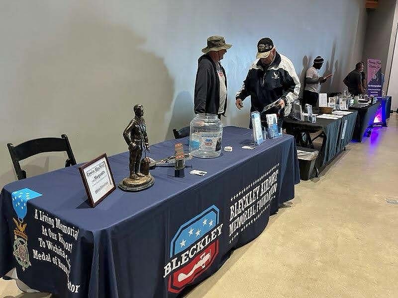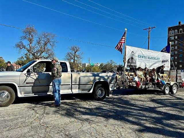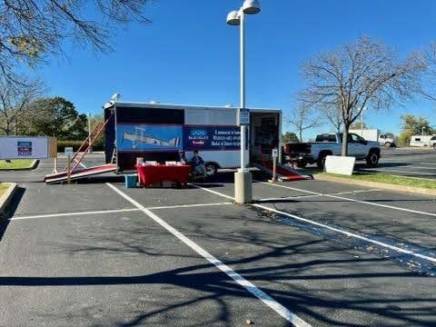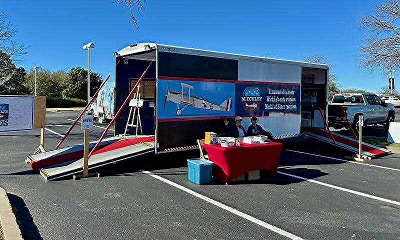 The 2024 Veterans Day Parade and display at Exploration Place included our Mobile Museum and flatbed trailer in the parade, and the Mobile Museum was open at Exploration Place with a table inside the children’s museum!