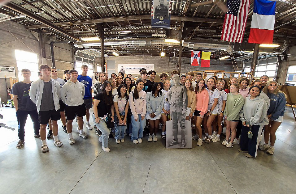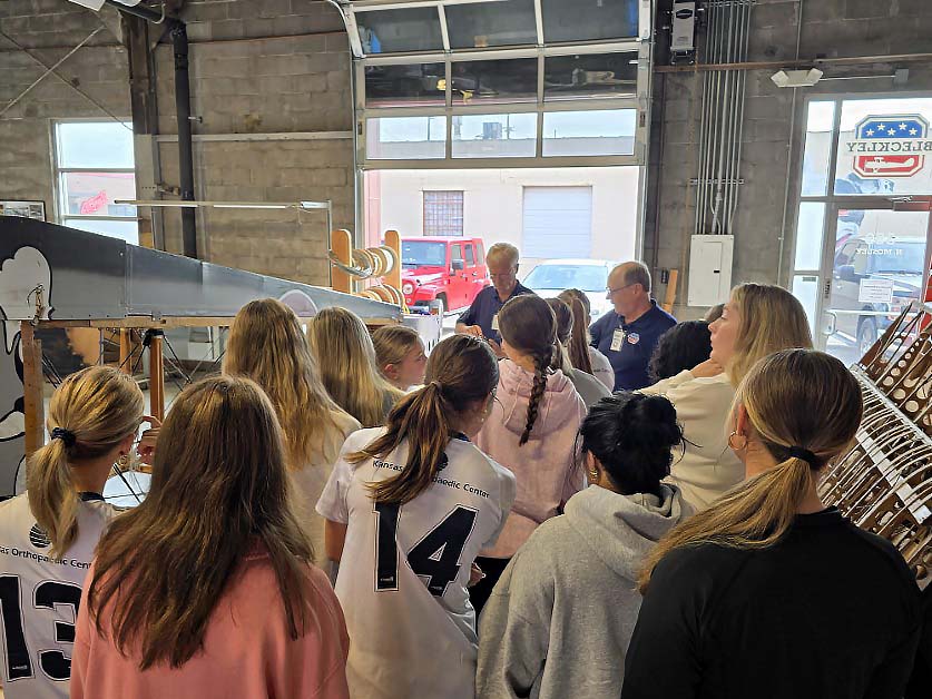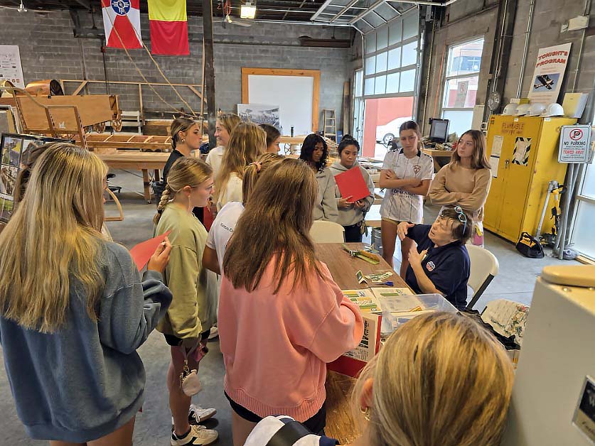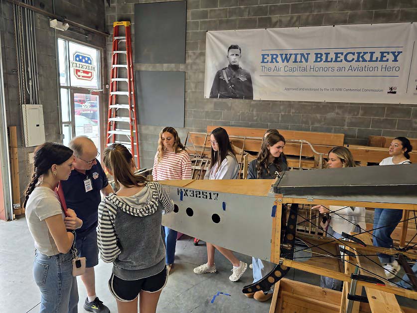Kapaun High School’s 2025 History Class visited Bleckley Foundation Workshop. They learned about Erwin Bleckley, Harold Goettler, the Lost Battalion, the DH-4, and the Physics of Flight!